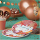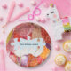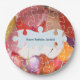 Playful puzzle balloon Birthday Party paper plates show the custom message - Happy Birthday, Name!-. For colour and customisation assistance or to discuss a custom design, contact https://t.me/KBMD3signs_chat.