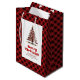 Playful red black tartan gift bag holiday design