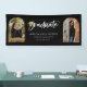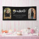 Playful white script with gold colour graduation cap accent, arch frame 2 photo graduation banner. Features, black colour background.