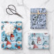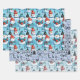 The first sheet features a playful scene of adorable snowmen in fields of snow and pine trees, set against a captivating dark turquoise blue background. This vivid hue evokes the feeling of a winter night, adding depth and warmth to your wrapped presents.