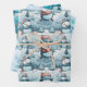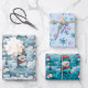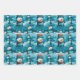 The first sheet boasts a dark turquoise blue background, adorned with adorable snowmen frolicking in fields of snow and pine trees. This lively scene evokes the joy of winter days, adding a sense of cheerfulness and festive spirit to your wrapped presents.