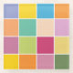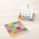 Colourful chequered glass coaster designed with various shades of yellows, orange, greens, lavender and blue.