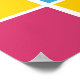 Colourful geometric blocks poster designed with various shades of yellows, orange, greens, lavender and blue.