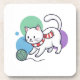 Delight in this whimsical illustration of a playful white cat wearing a red-and-white striped scarf, chasing a ball of green yarn. The design combines charming simplicity with lively colors, making it perfect for apparel and various lifestyle products. Its clean lines and joyful expression bring warmth and fun to any item, ideal for cat lovers and casual wear