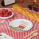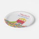 Party supplies paper plates that are perfect for that birthday party at an indoor playground gym! This colourful paper plates are in a rainbow colour palette featuring a playground house equipment with a slide and ladder that is situated within a ball pit. Add your birthday party message in the fun fonts!