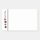Post it note with a row of playing card symbols at the top. "Let's Play" text in black under the symbols and a line across .