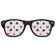 Red, black and white playing card suit pattern sunglasses. Great for a casino themed party favour.