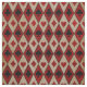 Red hearts and diamonds and black clubs and spades on a background of red and tan diamond shapes.
