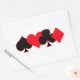 Black spade, red heart, black club, red diamond. All of the card suits in a row