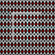 Modern geometric harlequin pattern features all four suits of a deck of playing cards (clubs, diamonds, hearts, spades)