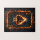 The image depicts a playing card, the Ace of Spades, surrounded by energetic flames.