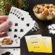 These playing cards are superb quality. The cards are a suitable thickness and the print quality is fantastic. They were created and delivered in a timely manner. Highly recommended. The print quality on them was excellent. I thought that they were fantastic!
