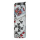 Perfect for the poker player in your life. These scattered playing cards have hearts, spades, diamonds, and clubs.