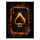 The image depicts a playing card, the Ace of Spades, surrounded by energetic flames.