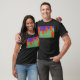 I give wanted to give this a 4 instead of a 5 because these Basic DARK T0shirts run unexpectedly SLIM or Narrow. Which is great if you do not have a potbelly, but I have a paunch. It isn't the shirt's fault that I've got a beer belly. The design and shirt itself is a quality cotton shirt. The color is more of a deep purple, but still a very pretty color. The Basic DARK T-shirts run a bit SLIMMER than the Basic Ts. The neck is a fraction narrower (or seems to be narrower) also. I'm a paunchy middle-aged woman and my neck is 12 inches (31cm) thick and the neckline fell about the same as in the photo of the man, and I had the desire to tug it a bit. So if you're a thick necked man or like loose shirts, be aware these are slimmer shirts. Once I get rid of my lockdown paunch it'll look great. The shirt washed well in cold water with no apparent bleeding. We don't have a dryer, so it hung dry. Did not shrink. Love the colors and the design. The design looks smaller on my shirt than it does on the model on-line. But still, it looks good on the shirt. The printing looks as it does on the model, just the size seems fractionally smaller. Washed garment in cold water, hung dry and design appeared unaffected.