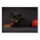 rottweiler 1,5 months old puppy is playing with red yarn ball