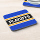 PLAYOFFS Vivid Blue Yellow Black White Stripes Coaster