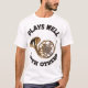 The "Plays Well With Others" text is prominently displayed on the front of the shirt, alongside a detailed graphic of a French horn.