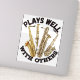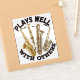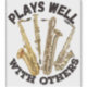 The "Plays Well With Others" text is prominently displayed on the front of the shirt, alongside a detailed graphic of 4 saxophones.