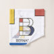 Majestic, funny, artistic monogram. Here is the letter "B". Neoplasticism style, or De Stijl, line and color artistic decoration, the funny bird sits on the letter. The field of art is located under the letter. The template name "BERNADETTE" is located under the image. An elegant and unique set of bath towels for anyone. This design is fully customizable. You can change or delete the template name, and you can change images. If you wish to change fonts, colors, sizes or the whole composition of the design feel free to use the "Edit Design" or "Personalize" (as the case may be) button of the blue color to further customize it. You will be transferred to the "Design Tool" where you can find fonts, colors, sizes on the right menu; layers, images, geometric elements, backgrounds on the left menu. Just be creative, customize, buy one, enjoy the party, and be happy!