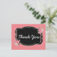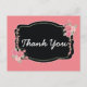 Thank your guests for attending your special occasion with this beautiful pink thank you postcard. This card features a beautiful pink and black floral design with the words "Thank you" written in the middle.