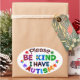 The messages of “Please Be Kind I Have AUTISM” to show autistic pride and raise awareness of autistic spectrum disorders and encourage kindness towards them.