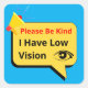 I dedicate this product to people who have vision problems. This unique and cute design is themed in blue and contains an image of an eye and the words "Please Be Kind, I Have Low Vision". You can give this product as a gift to your loved ones. or it can also be a form of our care, support, and affection for them.