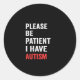 please be patient i have autism classic round sticker