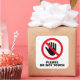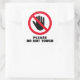 Please do not touch warning sign square stickers. Create your own personalised caution stickers for luggage, bike, water bottles, laptop and other products. Unique contour-cut stickers. Available in small and large sizes. Add your own forbidden / prohibition text. Also handy for hotels, motel, bed and breakfast, hospitality business, conference building, home, office space, restaurant, company, school, janitor, dorm, university, film studio, school, hospital, care home, bedroom, bathroom, toilet, cloak room, meeting room, swimming pool, editing room etc. Round circle with white stripe line and hand silhouette. Also handy as entry / do not enter icon for tourists.