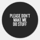 Please Don’t Make Me Do Stuff Lazy Teen Sarcasm Fu Classic Round Sticker