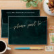 'Please post to' emerald and faux gold envelope. Room for your address labels to the front, and space for your return address printed on the rear of the envelope.