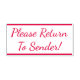 This rubber stamp design features the message "Please Return To Sender!". It could be used to indicate that received mail has been delivered to the wrong address or that the recipient is unknown, and should be returned to the sender.