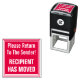 This basic rubber stamp design features the messages "Please Return To The Sender!" and "RECIPIENT HAS MOVED". It could be used to indicate that received letter mail may have been wrongly addressed, and should be returned to the sender.