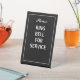 Please ring bell for service sign for desk top or table top. Black background with white text and pinstripe border.