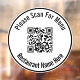 A black circle forms the border. A line of black display text is above and below the display image. You can edit the text to show a custom message such as information about the QR code or the name of your business. Remember to enter your website URL for the QR code to work correctly.