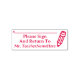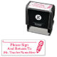 This rubber stamp design features the message "Please Sign And Return To", along with a line for a signature or initials to be written above. It also features a custom teacher’s or educator’s name. It could perhaps be be used by an educator, tutor or teacher to ask a student’s parent(s) or guardian(s) to review and acknowledge the mark that a student got on a paper, a test, an exam, a project, or some other school assignment.