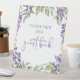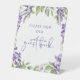 Please Sign Our Guest Book Purple Floral Script Wedding Purple Wisteria Floral Calligraphy Script Wedding Event Party Pedestal Signs features the text "Please Sign Our Guest Book" in modern purple calligraphy script typography. Perfect for weddings, engagement parties, anniversay, birthday, baby shower, bridal showers and more. Designed by Evco Studio www.zazzle.com/store/evcostudio