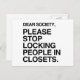 PLEASE STOP LOCKING PEOPLE IN CLOSETS POSTCARD