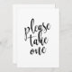 An elegant cutting edge wedding sign, features the text "Please take one" in a extroverted script font, the brush texture adds a spontaneous and playful feeling. The background colour can personalised according to your needs and preferences, please contact me if you have any special request.