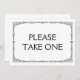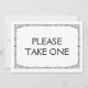 Simple and elegant art deco style black and white "Please take one" wedding sign, personalised with your own text.