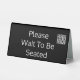 Our "Please Wait To Be Seated" table sign is the perfect solution for managing guest flow in busy dining environments. With a clear message and a convenient QR code, this sign addresses the common challenge of ensuring guests know where to wait while maintaining order and enhancing their experience.