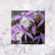 For hardy Orchid fans! Ceramic tile that features a photo image purple and white Pleione Orchid flowers, also known as Windowsill Orchids. A lovely, floral design! Select your tile size. Makes a great kitchen trivet!