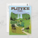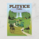 Plitvice Croatia travel poster of the landscape and famous waterfall.