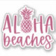 Get ready for summer with this cute beach inspired sticker that's perfect for anyone who loves island style! Cute design features the quote "aloha beaches" with a tropical pineapple fruit illustration standing in for the letter O.