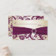 This plum and champagne damask placecard matches the wedding invitation shown below. ****PLEASE NOTE that the ribbon and jewels are printed images and are not real. If you require any other matching items, please email your request to niteowlstudio@gmail.com.