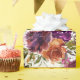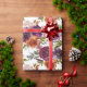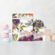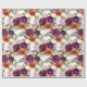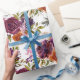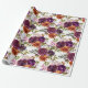 Watercolor floral pattern wrapping paper in accents of burgundy plum and ginger.