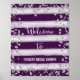 Poster print for welcome sign with faux silver glitter design and plum purple stripes watercolor background.