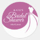 Plum and White Elegant Gown Bridal Shower Favour Classic Round Sticker