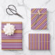 Plum and white five stripes pattern with tan wrapping paper sheet