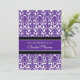 Bridal shower invitations in elegant dark purple, black and white classic floral damask vintage pattern, chic and feminine, customisable with your shower details. Also available in thank you cards and invitations for the bridal party.